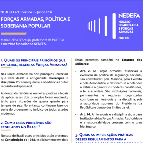 O documento sintetiza a relação entre as Forças Armadas e a política do ponto de vista do ordenamento jurídico brasileiro.
